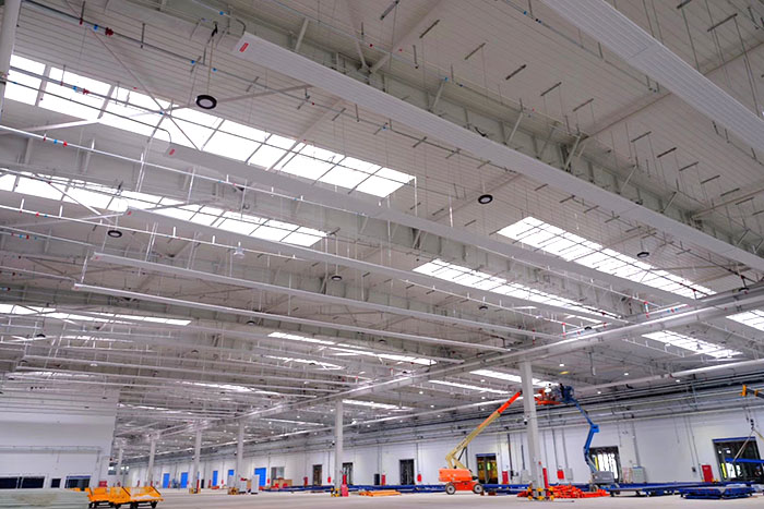 全新的低矮型高大空間冷暖空氣處理機應用武漢中車組裝車間,全新的數(shù)字直流了解更多